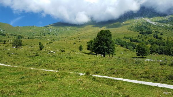 Diese Tour führt uns am Fuße des Krn-Massivs über die Almen (Planina) Slapnik und Zaslap, wo man Käse kaufen kann, zur Hütte Planina Kohinja. Die Hüttenwirte, selbst Hundebesitzer, servieren in ihrem großen Gastgarten slowenische Spezialitäten. Unbedingt probieren: Struklji, eine Art gekochter Topfen-Strudel, süß oder herzhaft gefüllt. Die Tour eignet sich nicht für heiße Tage, da der Anstieg teilweise knackig und der Weg weitgehend schattenlos ist. Wenn das Wetter passt, schaffen es ausdauernde Naturen von der Planina Zaslap auch noch weiter zur Krn-Hütte.