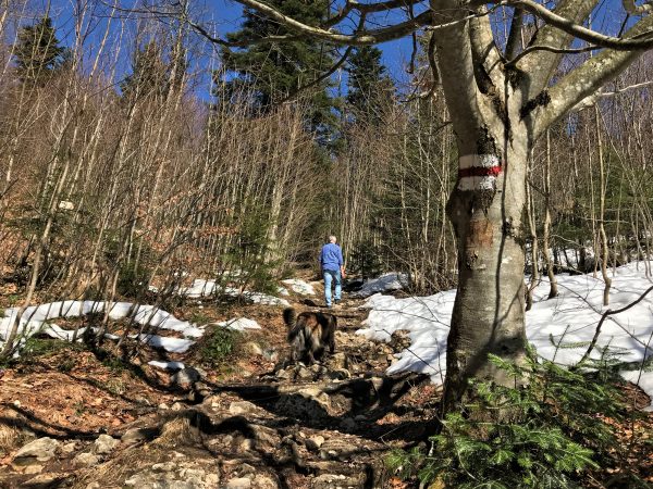 Nach schneereichen Wintern führt diese Tour aus dem Frühlingsgrün in den Schnee. Für halbwegs fitte Zweibeiner gut zu schaffen. Für kleine oder untrainierte Hunde können die steinigen Pfade und Stufen mitunter recht anstrengend sein. Zur Entlastung kann man immer wieder auf den Forstweg wechseln. Oben angekommen erwartet Wanderer ein toller Blick von der Zwieselalm und ihrem Nachbarn, dem Kaiser-Wilhelm-Haus, über Bad Reichenhall. Und später im Jahr ist die Alm auch bewirtschaftet. Im Frühling Picknick nicht vergessen! Denn hier oben lässt es sich im Sonnenschein richtig gut lange aushalten.