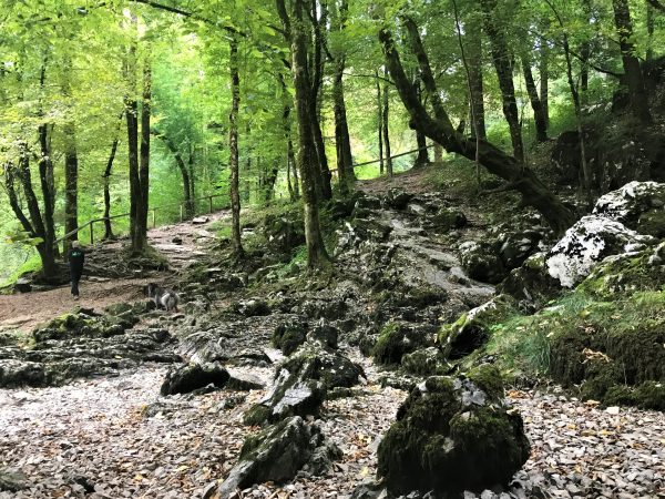 Im grünen Karst Sloweniens, keine Autostunde von der Küste entfernt, hat das Wasser über Jahrmillionen den Kalkstein gelöst und unterirdische Höhlen und Gänge geschaffen. Von Herbst bis in den späten Frühling bildet das Wasser überirdisch Seen, im Sommer versickert es und verschwindet im Untergrund. Besonders eindrucksvoll lässt sich das mit Hund zum Beispiel im Naturschutzgebiet von Rakov Skocjan bestaunen. Dort hat sich der Rak unter dem Gestein seinen Weg gebahnt – bis schließlich sein Dach einstürzte und den Fluss auf gut 2,5 Kilometern freilegte. Durch dieses wildromantische Flusstal ziehen sich heute zahlreiche Wanderwege. Bären, Wölfe und Luchse leben hier. Doch die haben so viele Rückzugsmöglichkeiten, dass sie auf Abstand bleiben. Hunde, die ihrem Jagdtrieb folgen, sollten aber unbedingt an die Leine. Am schönsten in Frühling und Herbst, aber auch im Sommer, wenn sich das Wasser weitgehend zurückgezogen hat, absolut beeindruckend.