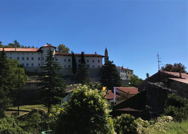 Terassenartig stehen die Häuser von Stanjel auf dem Hügel, der Sonne zugewandt und von einer Mauer umgeben.