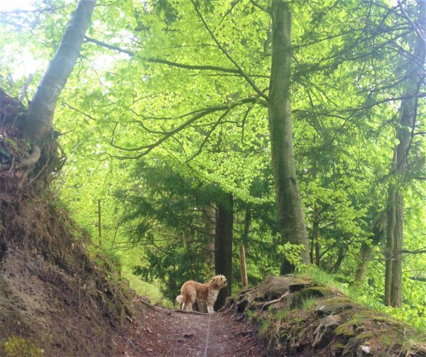 Der größte Teil des Fußwegs führt durch den Wald, angenehm zu begehen für Hund und Mensch.