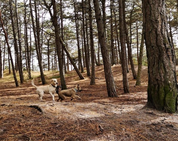 Wer mit der Fähre vom Hafen Havneby auf der dänischen Insel Römö nach Sylt fährt, für den lohnt sich ein Abstecher im wunderschönen Hundewald von Kirkeby. Das hoch eingezäunte, weitläufige Gelände liegt direkt am Weg. Auch Wohnmobile lassen sich hier prima parken. Der Wald ist tatsächlich ein sehr schönes Fleckchen Erde, keine Schmuddelecke, die man den Vierbeinern überlässt, weil sonst nichts damit anzufangen wäre. Viele schmale und sandige Pfade durchziehen das Gebiet. Bänke (mit Marmeladengläser für die Raucher) laden zur Pause ein. Und immer trifft man unterwegs Spielgefährten für den Wauzi, einheimische Hunde genauso wie Urlaubsgäste.