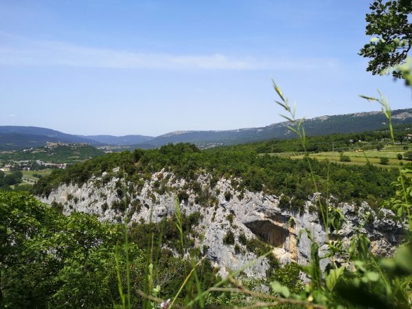 Weiter Blick über den Canyon, auf Buzet und das bewaldete Cicarija-Gebirge. Von hier oben geht`s direkt wieder bergab.