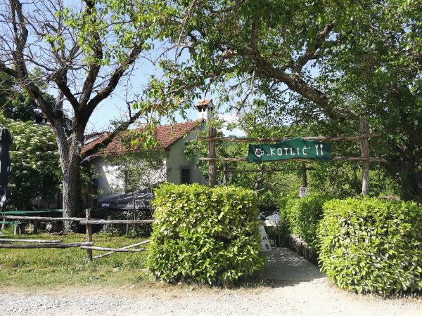 Nach rund 20 Minuten erreichen wir das erste Haus von Kotli an der Mirna: die Gaststätte Kotli.