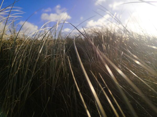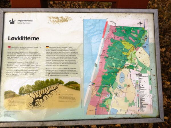 Statt hoher, gerader Stämme säumt Gebüsch unseren Weg durch die Løvklitterne. Tatsächlich sind es die Kronen großer, uralter Eichen, deren Stämme mehrere Meter tief unter dem Sand verborgen liegen. Über Jahrhunderte haben die Dünen die Eichen einfach verschluckt. Im Frühjahr treiben die einzelnen Kronengruppen zeitversetzt aus – ein faszinierendes Naturpuzzle, bei dem jede „Insel“ aus Blättern zu genau einem Baum gehört. Die Sandeichen sind perfekt an das raue Küstenklima angepasst: kleinere Blätter, widerstandsfähig gegen Wind und Trockenheit, dazu tiefe, kräftige Wurzeln im lockeren Boden. Zusammen bilden sie ein wertvolles Ökosystem für Insekten, Vögel und viele andere Tierarten. Wir wandern hier also zwischen Baumkronen. Ein unwirkliches Gefühl.
