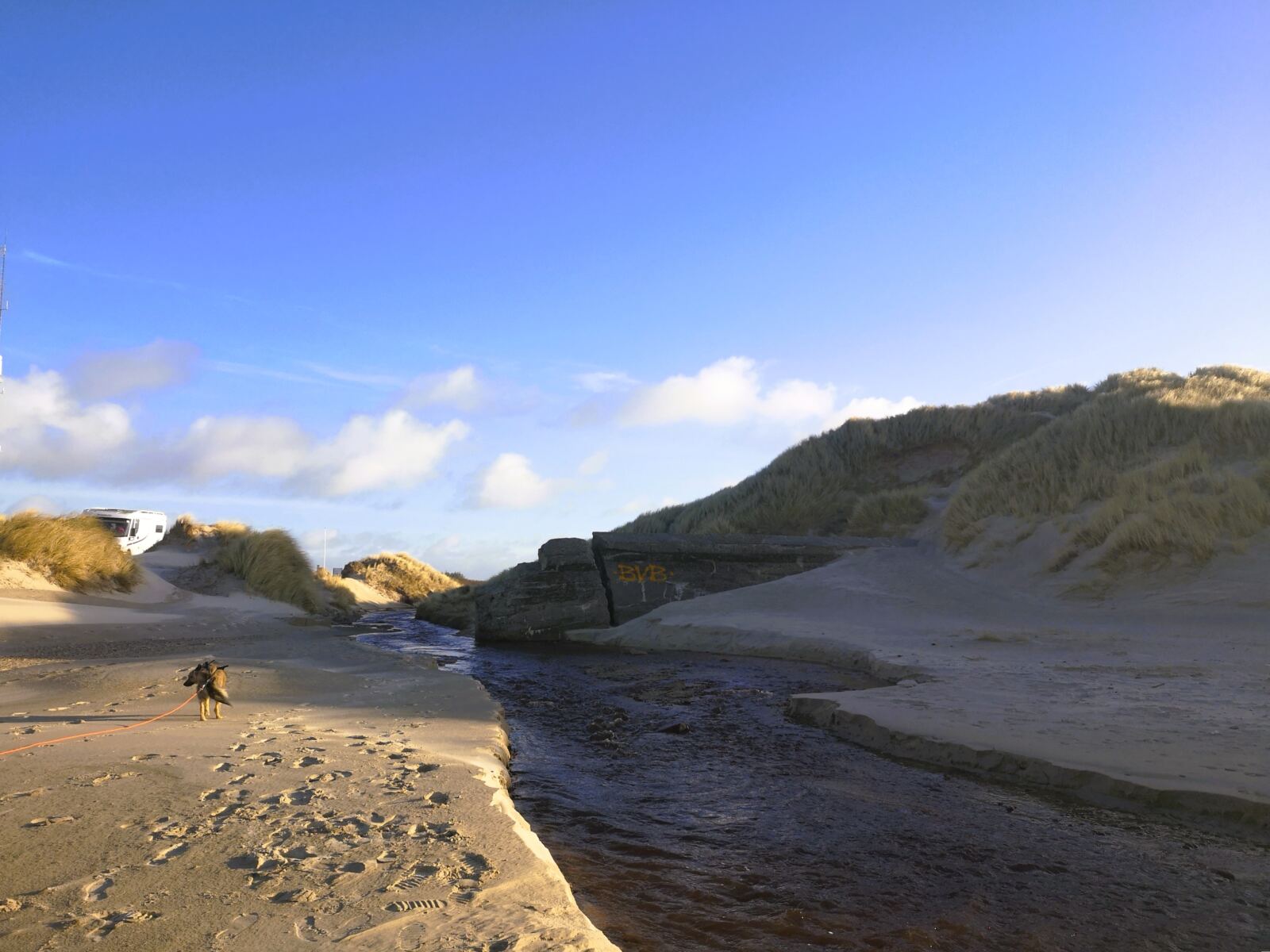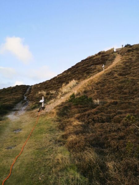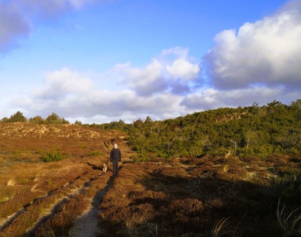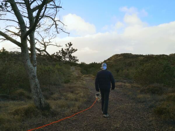 🐕‍🦺Im Küstenschutzwald herrscht Leinenpflicht. Doch mit einem Hund, der nicht jagt und auf den Wegen bleibt, kommt man auch mit einer Schleppleine gut klar. Am Strand darf der Vierbeiner zwischen Oktober und März freilaufen.