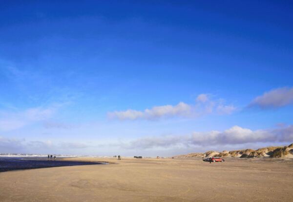 Diese Rundwanderung hat uns auch mit ihren Kontrasten begeistert: erst der stille, versandete Eichenwald, dann die offene Dünenlandschaft, schließlich der weitläufige Børsmose Strand, einer der ruhigeren Strände nahe Henne Strand, mit viel Platz und flachen Uferzonen. Von der gut 30 m hohen Düne Gråmulebjerg können wir alles überblicken.