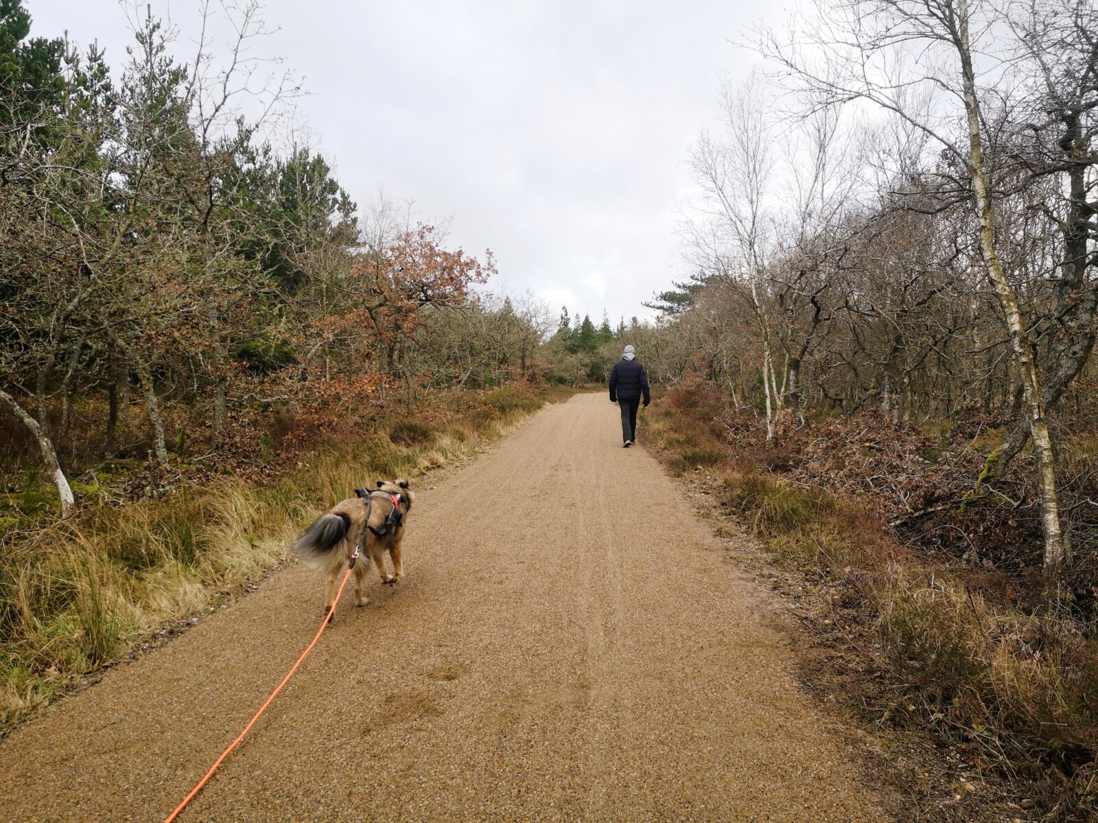 🥾 🐾 Unter Füßen und Pfoten: weiche Sandwege, dazwischen kurze Abschnitte über befestigte Forstwege.
