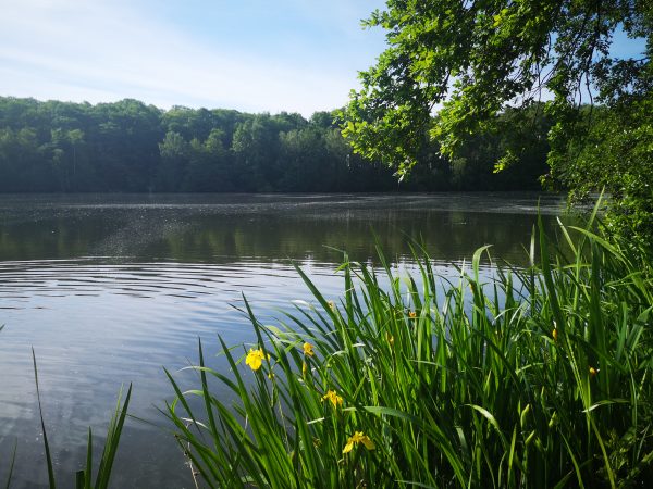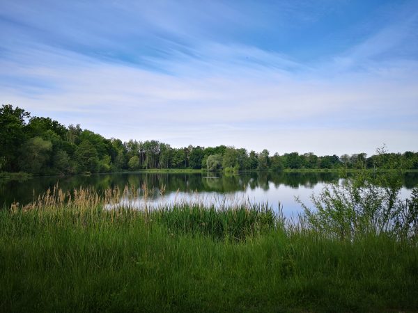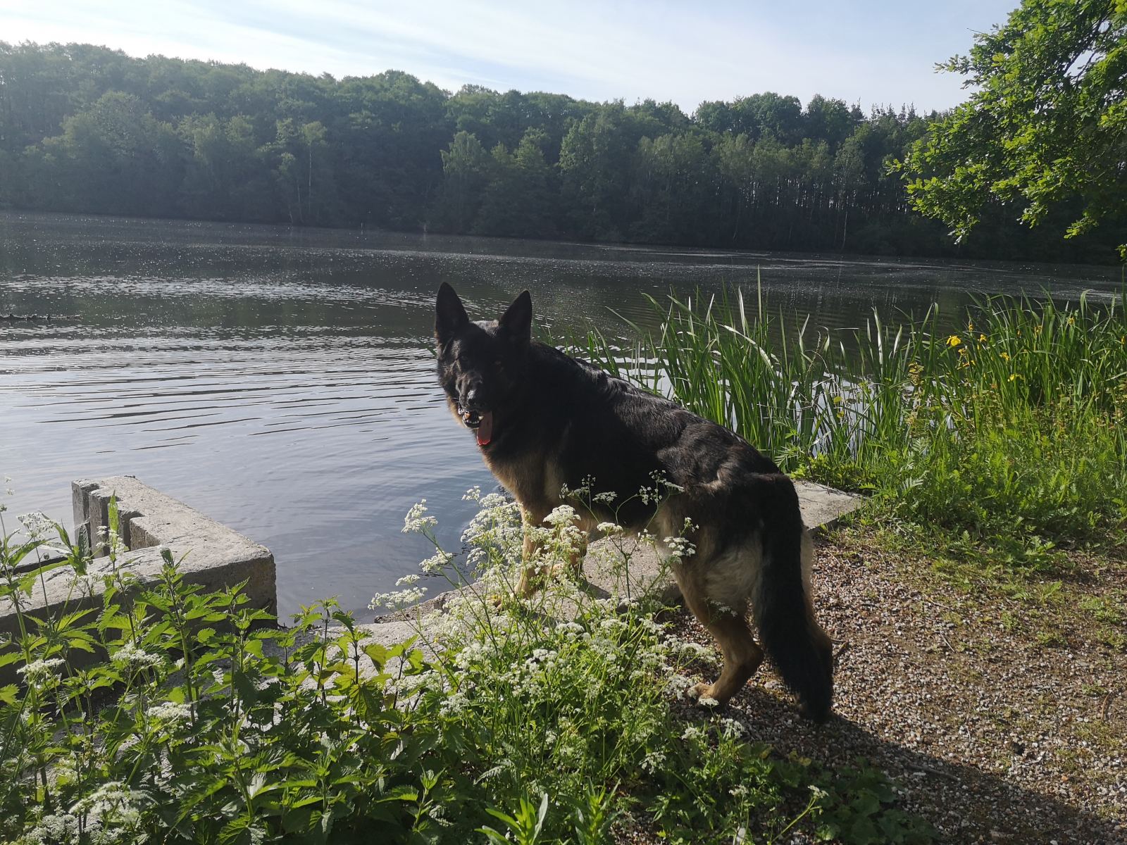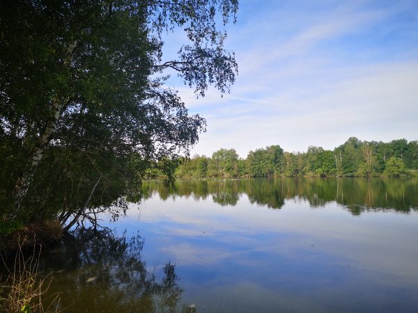 Eine schöne Ecke, um ganz in Ruhe mit den Hunden eine Runde zu drehen. Außer den aufregt schnatternden Vögeln, die auf einer kleinen Insel heimisch sind und gelegentlich den Gruß eines Anglers hört man hier wenig.