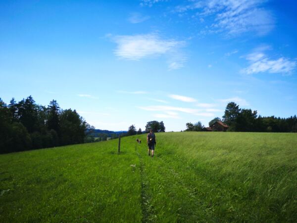 Zwischen Wiesen geht`s zum Einödhof Hafenthal.
