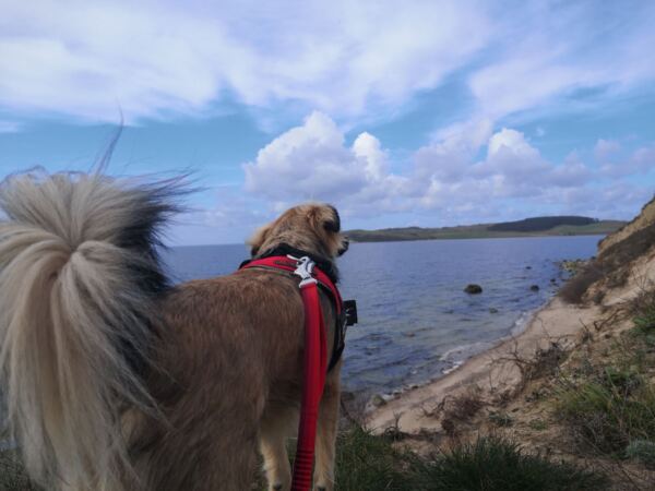 Im äußersten Süden Rügens, dort, wo man glaubt, die Halbinsel Mönchgut wäre schon zu Ende, schließt sich noch ein Halbinselchen an: Klein Zicker. Das hügelige Stückchen Land im Biosphärenreservat Südost-Rügen bietet Steilküsten, Naturstrände, ein malerisches Fischerdorf und eine ganz besondere Atmosphäre, in die wir uns sofort verliebt haben. Und auch unser Hund war begeistert. 😊 Unsere kleine Wanderung mit Vierbeiner führt uns hinauf auf den Zicker Berg, weiter über den Rücken der Insel und runter zum Bodden und dem Naturstrand. Unterwegs genießen wir wunderschöne Ausblicke über die Ostsee und das benachbarte Groß Zicker mit den Zicker Bergen, dem wirklich äußersten Süden Rügens und so etwas wie die Rügener Schweiz. Unter Füßen und Pfoten: weiche Wiesenpfade. Der Weg verläuft schattenlos. Das Gebiet um den Klein Zicker Berg steht unter Naturschutz. Leinenpflicht. Wenn nicht viel los ist, kommt man mit einer Schleppleine jedoch prima klar.