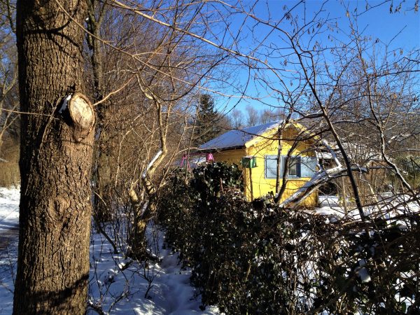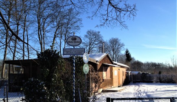 Einkehrmöglichkeit: die Kneipe des Kleingartens mit Spielplatz, im Winter allerdings geschlossen.