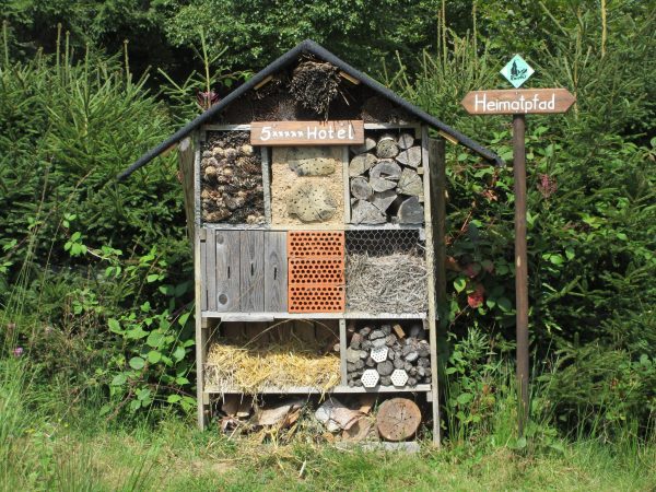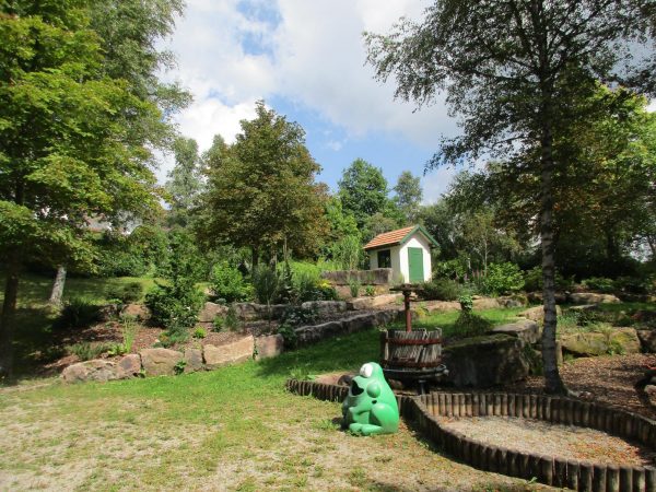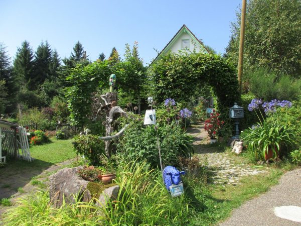 Über einen Waldweg und den Heimatpfad erreichen wir den Garten des Hotels Waldblick, an der Anlage vorbei geht es zum Wald.