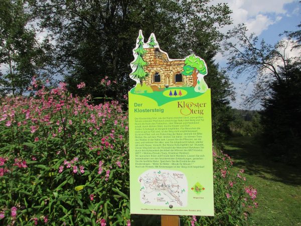 An den Ruinen des Klosters, der Kirche und dem Friedhof vorbei führt uns der Heimatpfad aus dem Ort heraus und in den Wald, zwischenzeitlich wird der Heimatpfad zum Vogel- und danach zum Jägerpfad.