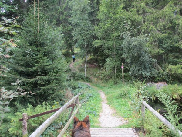 Wir wechseln auf den Klostersteig, überqueren die B 28 über die Fußgängerbrücke und erreichen Kniebis-Dorf.