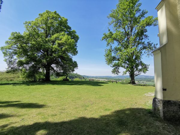 Spaziergang um Kraiburg zu einer Kapelle, von wo aus man einen Blick auf die Umgebung hat.