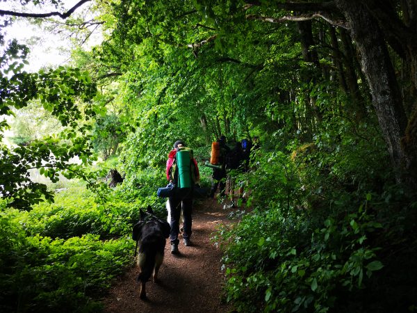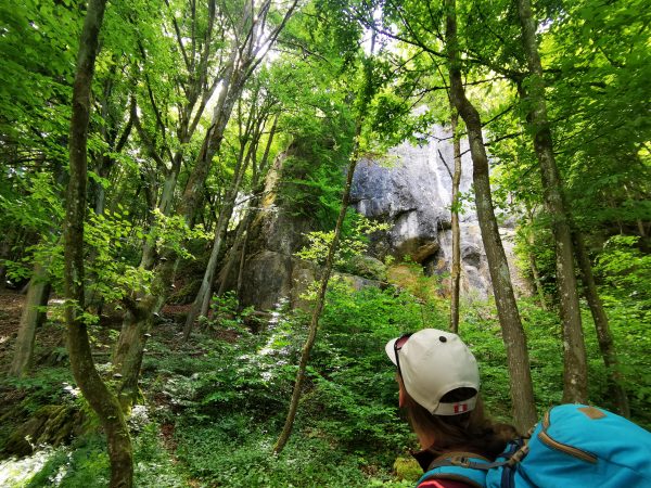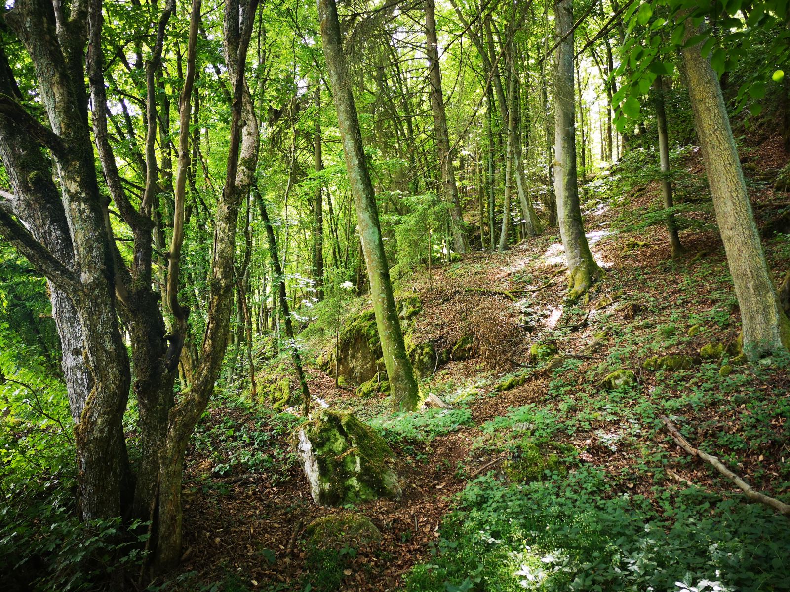 Am Wochenende ist auf dem Abschnitt an der Vils viel los, aber es ist auch einfach wunderschön hier. Ein weicher Waldweg, daneben schlängelt auch der Fluss dahin. Immer wieder ragen Felsen empor, an manchen kann man Kletterern zusehen.