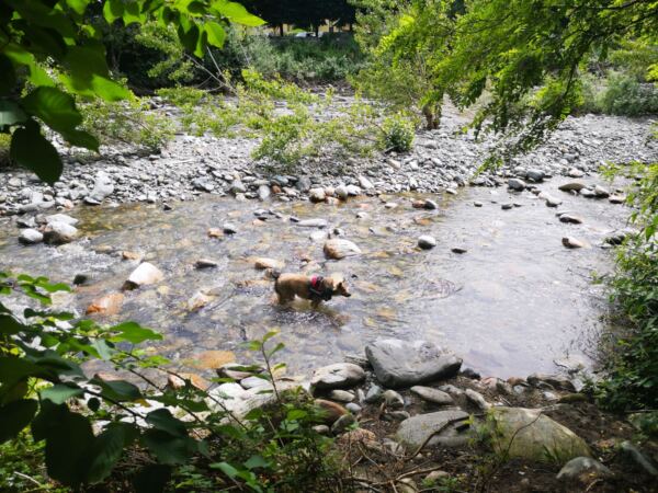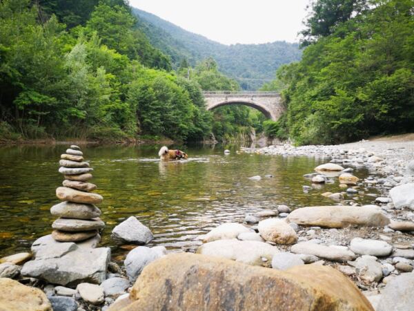 In unmittelbarer Nachbarschaft des prominenten Lago Maggiore liegt das Valle Cannobino, ein kaum erschlossenes, wildromantisches Tal mit wenigen Bergdörfern. Der namensgebende Fluss Cannobino und seine Nebenflüsschen haben sich über die Jahrhunderte ins Gestein gefressen und teils tiefe, klammartige Schluchten hineingefräst. Zwischen Traffiume und der Mündung des Cannobino in den Lago Maggiore gibt sich der Fluss zahmer. Sandbänke laden zum Planschen im seichten Wasser ein. Vom Campingplatz Valle Romantica, in Traffiume am Flussufer gelegen, lässt es sich ganz entspannt mit Hund nach Cannobio spazieren – und unterwegs mal abtauchen.