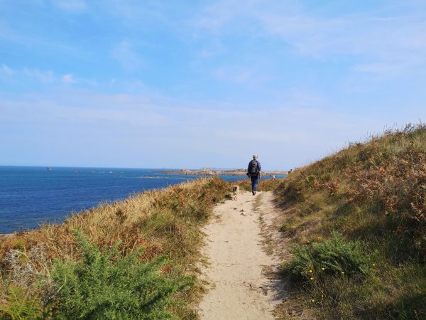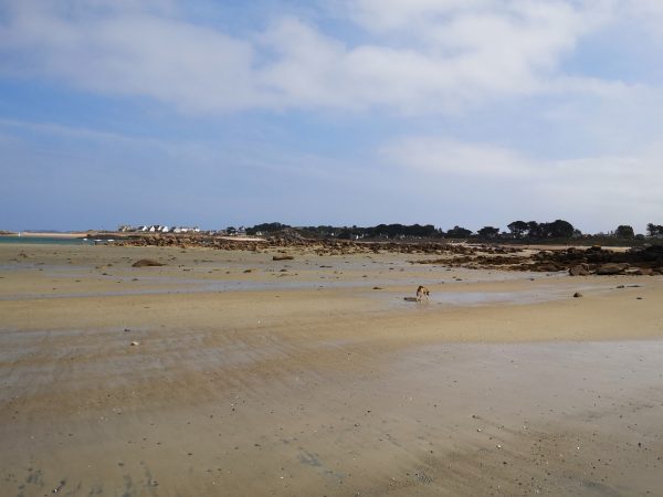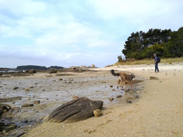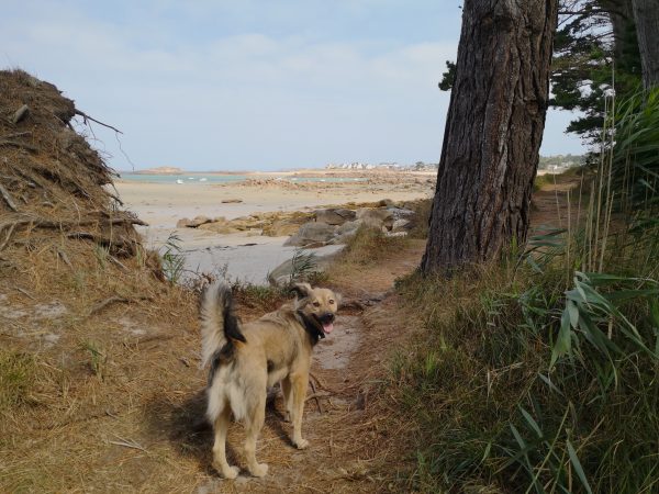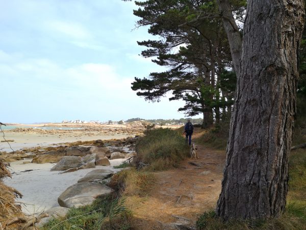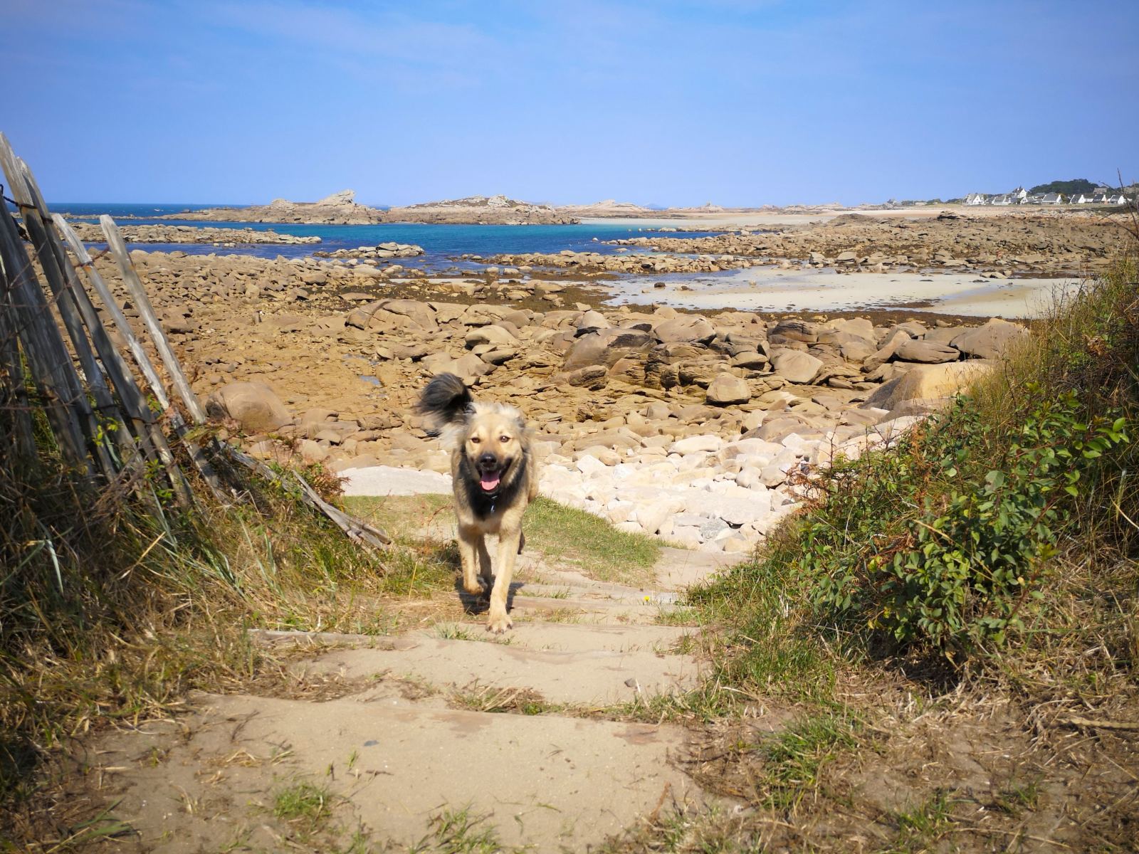 In der Badesaison sind Hunde an einigen Stränden auf dem Weg nicht erlaubt. Doch zwischendurch finden sich genug Ecken, wo der Wauzi ins Wasser kann, zum Beispiel gleich am Anfang der Tour neben dem Campingplatz oder in der Baie de kerlavos kurz vor Trégastel. Bei Ebbe nutzen ohnehin viele Hundesitzer den Meeresgrund als Spielfläche für ihre Vierbeiner. Viel Sonne, kaum Schatten. Unter Füßen und Pfoten: ein Sandweg, mal mehr, mal weniger steinig.