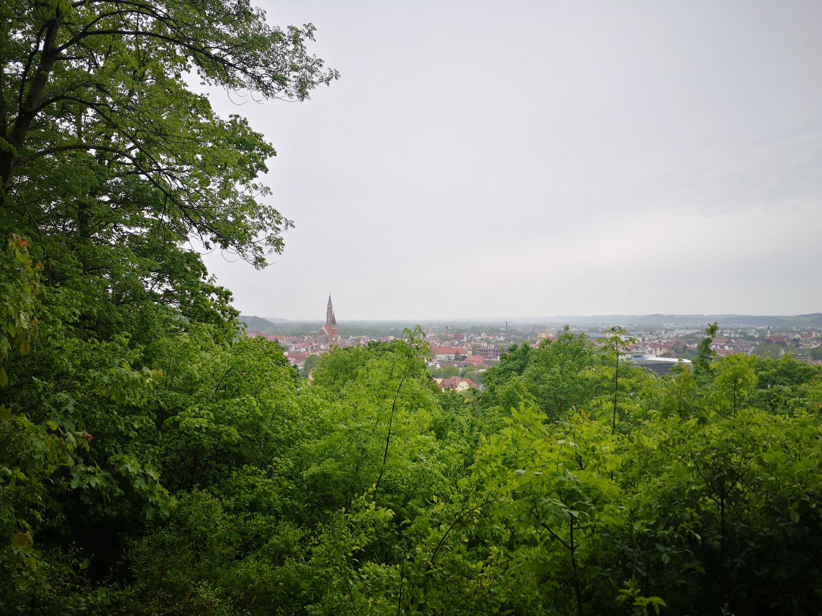 Eine schöne Wanderung, die uns über viele Stufen zum Aussichtspunkt Carossahöhe bringt. Von dort hat man einen wunderschönen Blick über Landshut und seine Wahrzeichen, die Burg und die Martinskirche.