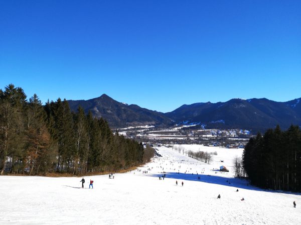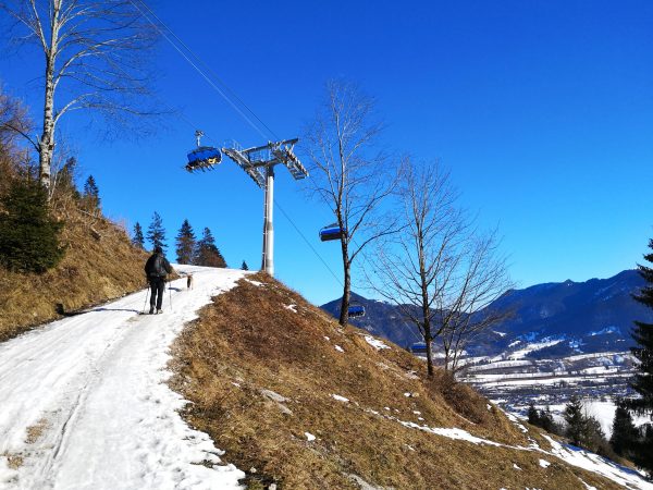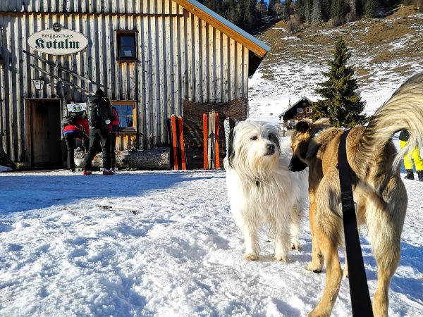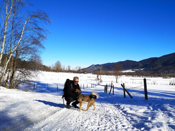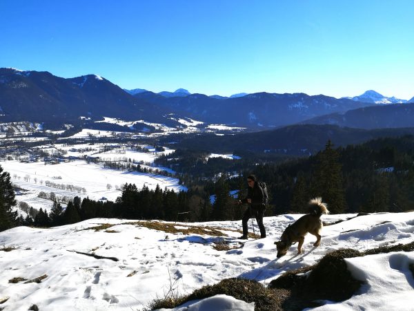 Rodeln, Skitouren gehen oder mit dem Hund wandern – auf dieser Wintertour zur Kotalm auf dem Brauneck in Lenggries begegnen uns einige Leute, die das eine mit dem anderen verbinden. Auf der Kotalm, die in Sichtweite von Pisten und Liften liegt, treffen sich dann alle. Entsprechend trubelig geht`s hier bei gutem Wetter am Wochenende bei nur halbwegs vernünftigen Pistenverhältnissen zu. Also nichts für Ruhesuchende, sondern für solche, die’s gerne mal ein wenig lebendiger wünschen und kein Problem damit haben, den Vierbeiner auch mal anzuleinen, wenn es auf dem Wanderweg hier und da ein wenig voller ist oder die Piste gekreuzt werden muss.