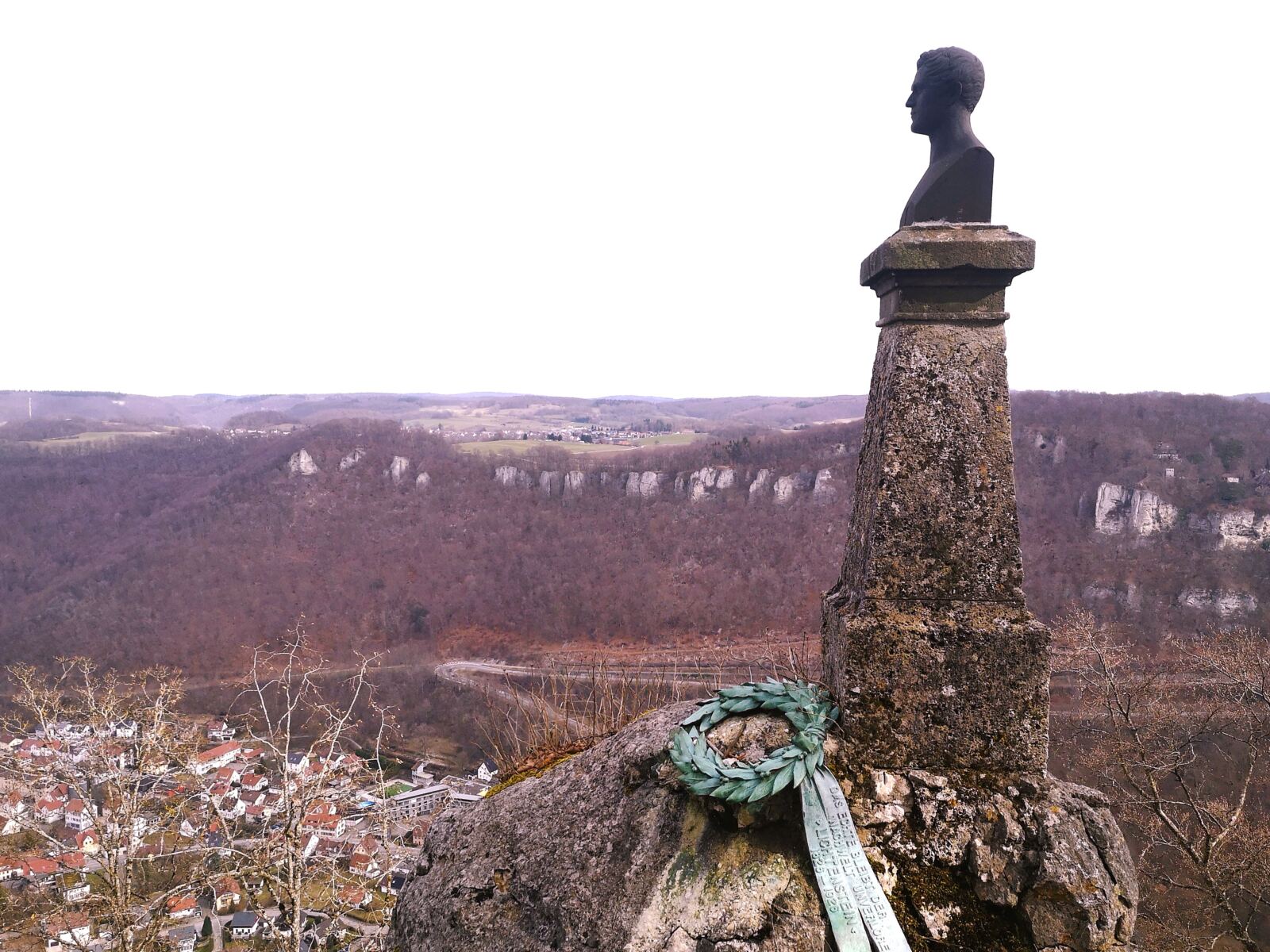 🗺️Wegbeschreibung: Wir starten am Parkplatz beim Schloss Lichtenstein. Ein kurzer Rundweg führt zunächst zum Wilhelm-Hauff-Denkmal, von dem sich ein beeindruckender Blick über das obere Echaztal öffnet. Von hier lohnt sich auch ein kurzer Abstecher zur Ruine Alt-Lichtenstein, die ebenfalls schöne Weitblicke auf das Schloss und das Tal tief unter uns bietet.
