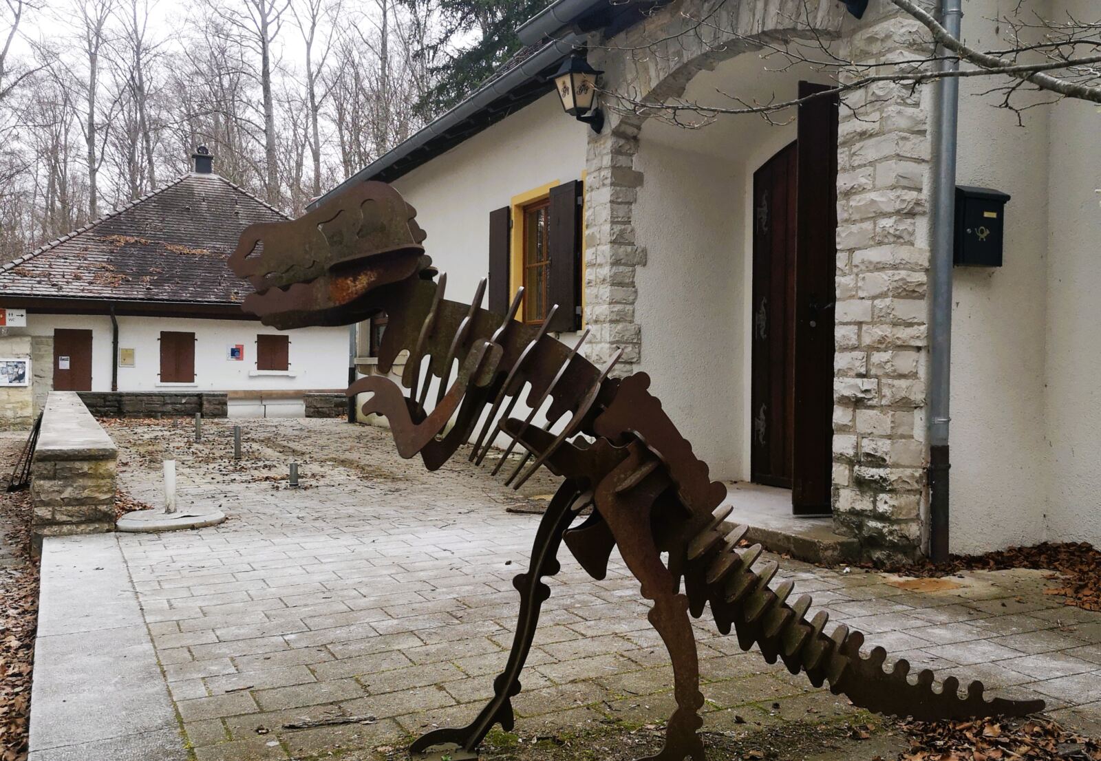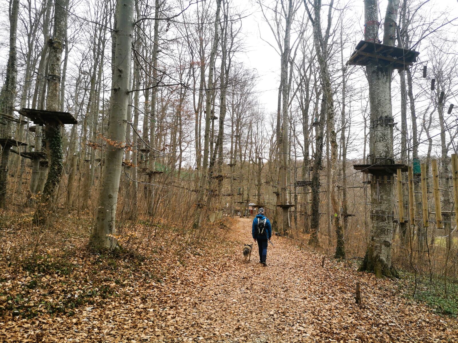 Zurück auf dem Weg passieren wir das märchenhafte Schloss und gelangen hinüber zum Gasthof „Altes Forsthaus“, zu dem ein Grillplatz mit Spielplatz und der benachbarte Abenteuerpark gehören – ein Baumwipfelpfad. Im Februar liegt die Anlage allerdings noch im Winterschlaf.