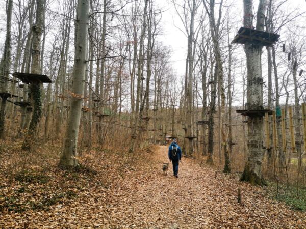 Unterwegs kommen wir auch an der Nebelhöhle vorbei, einer der bekanntesten Schauhöhlen der Schwäbischen Alb (für Hunde allerdings nicht zugänglich). Wenn die Höhle geöffnet ist, lädt daneben die Gaststätte „Maultaschenwirt“ mit schönem Biergarten zur Einkehr ein. Direkt beim Schloss befindet sich außerdem ein Klettergarten, der Lichtensteiner Abenteuerpark – ideal, wenn man mit Hunden in einer Gruppe unterwegs ist und sich für eine Weile aufteilen kann.
