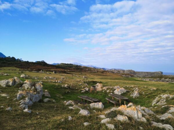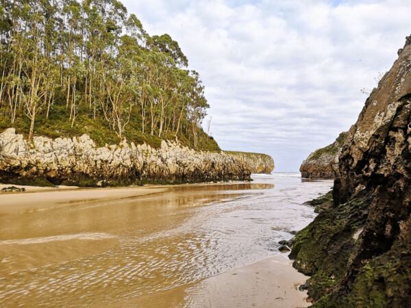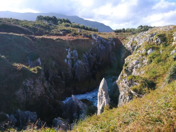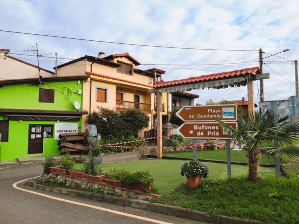 Ausgangspunkt dieser traumhaften und gut beschilderten Wanderung ist der große Parkplatz am Camino a Llames de Pria. Hier lässt sich auch ein Wohnmobil prima parken. Über den Camino laufen wir in den Ort hinein. An der nächsten großen Kreuzung halten wir uns links und folgen den Wegweisern Richtung Bufones de Pría und Playa de Guadamía. An der nächsten Kreuzung links ab, an der nächsten rechts ab – beide sind beschildert. Über den Camino de la Playa gelangen wir zur wildromantischen Bucht.