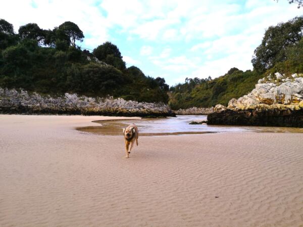 Die bekanntesten Bufones in Asturien sind die Bufones de Pría im kleinen Örtchen Llames in der Nachbarschaft des bekannteren Llanes. Unsere Wanderung bringt uns über den wunderschönen Klippenpfad vorbei an den Bufones und schließt auch die Playa de Guadamía ein. Der gleichnamige Fluss mündet hier ins Meer. Die Bucht ist schmal, wunderbar wild, von Felsen gesäumt und eignet sich großartig, um durchzurennen, dass der Schlick nur so spritzt. Die Lieblingsbucht unseres Hundes. ❤️🐕