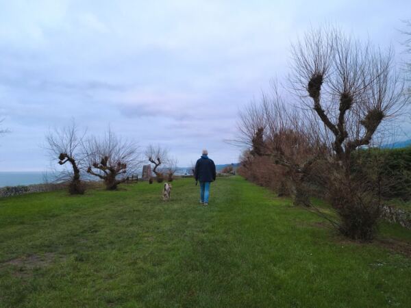 Wer Llanes mit Hund erkunden möchte, startet am besten auf dem Paseo de San Pedro. Der breite, von Wiesen gesäumte Wanderweg zieht sich an der Steilküste von Llanes entlang, bietet tolle Ausblicke aufs Meer und die Buchten und führt über den Hafen in die Altstadt. Hier ist man selten allein unterwegs. Wir haben unseren Amos deshalb an die Flexi genommen, weil er andere Rüden leider gar nicht mehr mag. Viele Einheimische waren jedoch mit freilaufenden (freundlichen) Hunden unterwegs. So lange man Rücksicht auf hundelose Spaziergänger nimmt, scheint das auch für niemanden ein Problem zu sein. Eine Leinenpflicht war auf dem Paseo jedenfalls nicht ausgeschildert.