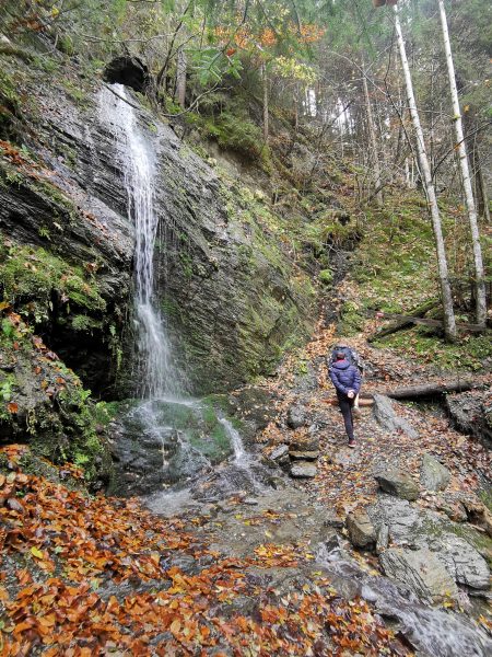 Der breite Weg verläuft hoch über dem Zederhausbach. Besonders schön: Das Naturdenkmal Brünnwandquelle. Hier sprudeln zwei Quellen direkt aus der Feldwand und stürzen als Wasserfälle nach unten zum Bach.