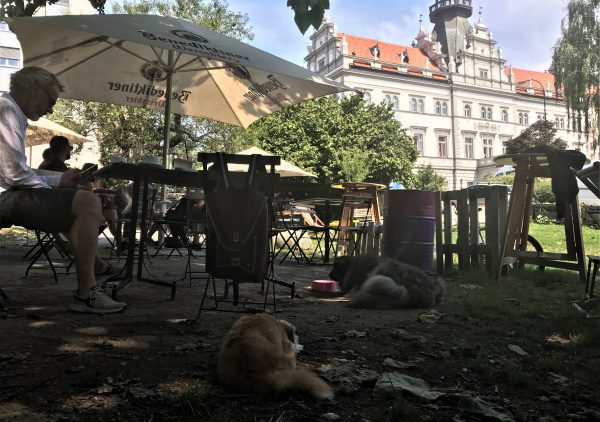 Café und Bar "Urban Garden" (Ulica Kneza Koclja 6) nahe dem Drava-Ufer und schräg gegenüber des Kulturcenters Narodni dom. Viele Gäste kommen mit Hund. Und die laufen hier frei. Die Atmosphäre ist herzlich und entspannt. Und man kommt schnell ins plaudern.
