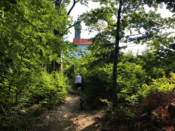 Ausgangspunkt unserer Tour: der Waldweg zum Kalvarienberg über der Stadt mit der Kapelle der heiligen Barbara.
