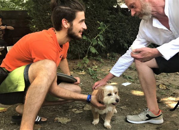 Kellner Sergej im "Urban Garden" liebt Hunde - und kennt alle Besuchshunde mit Namen. Die Kleine hier stammt aus Bosnien, wie uns ihr Herrchen (der lange in Deutschland Basketballprofi war) erzählt.