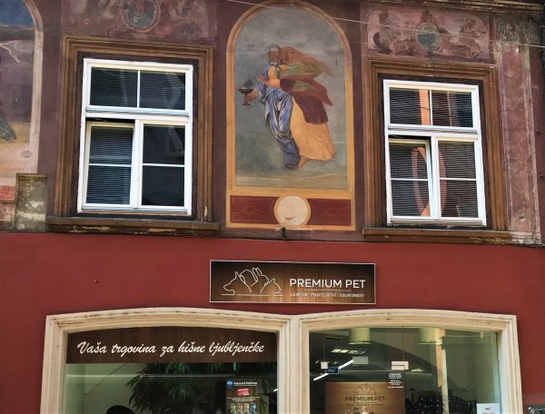 Sogar Läden für Heimtierbedarf prunken in Maribor mit historischen Fassaden.