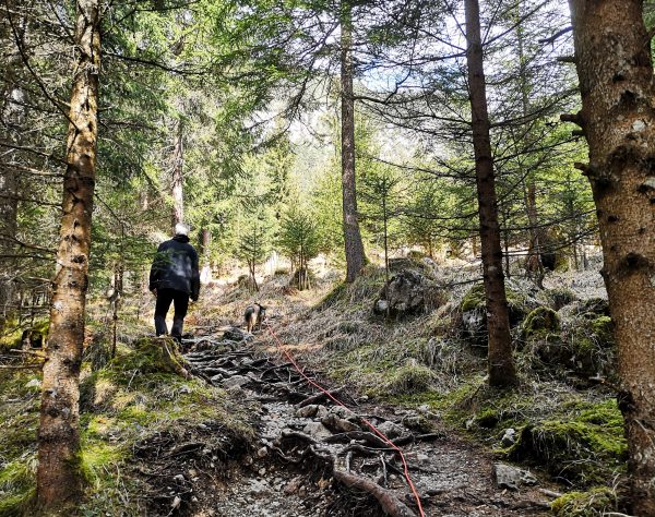 Die Tour stellt keine besonderen Anforderungen an Mensch und Hund. Rund um den Wasserfall müssen wir die Schleppleine (hier herrscht Leinenpflicht) gegen die kurze Leine austauschen, um niemanden zu Fall zu bringen. Unterwegs mehr Sonne als Schatten – ideal für einen Frühlingstag.