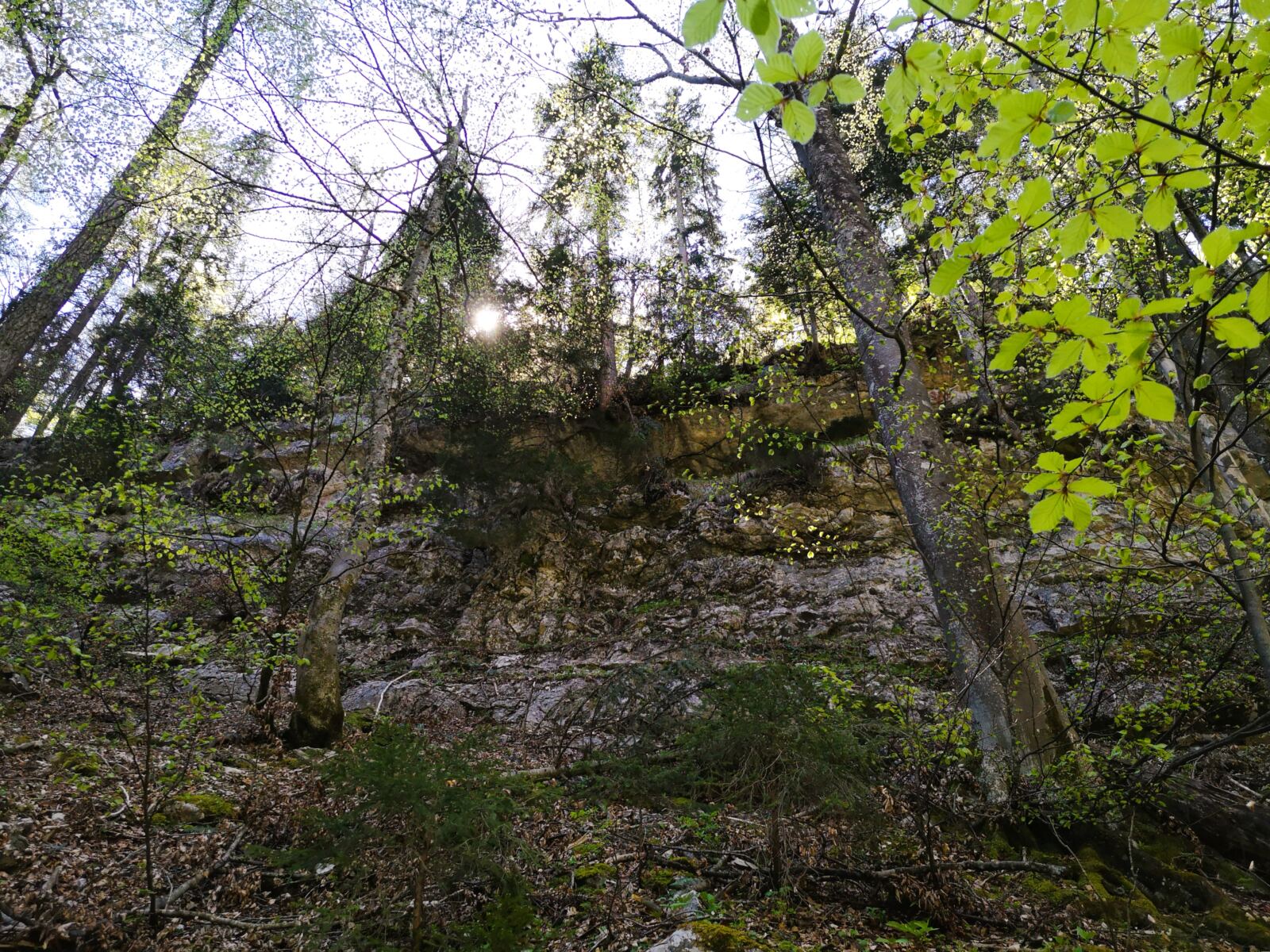 Vorsicht mit Hund am Gipfel!  An mehreren Stellen fallen die Wände hier steil ab.