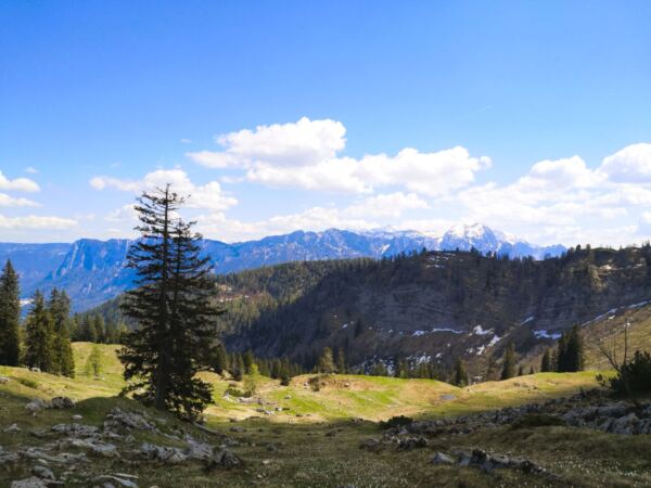 Unsere Wanderung bringt uns auf das Sonntagshorn (1.961 m), den höchsten Berg der Chiemgauer Alpen, an der Grenze zwischen Deutschland und Österreich gelegen. Der Rundumblick vom Gipfel ist spektakulär: Nach Norden überblicken wir das Voralpenland bis zum Chiemsee, nach Süden das österreichische Saalachtal bis zu den schroffen Loferer und Leoganger Steinbergen, und weiter bis zu den schneebedeckten Zacken der Hohen Tauern mit dem Großglockner (3.798 m) am Horizont.