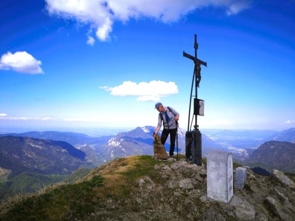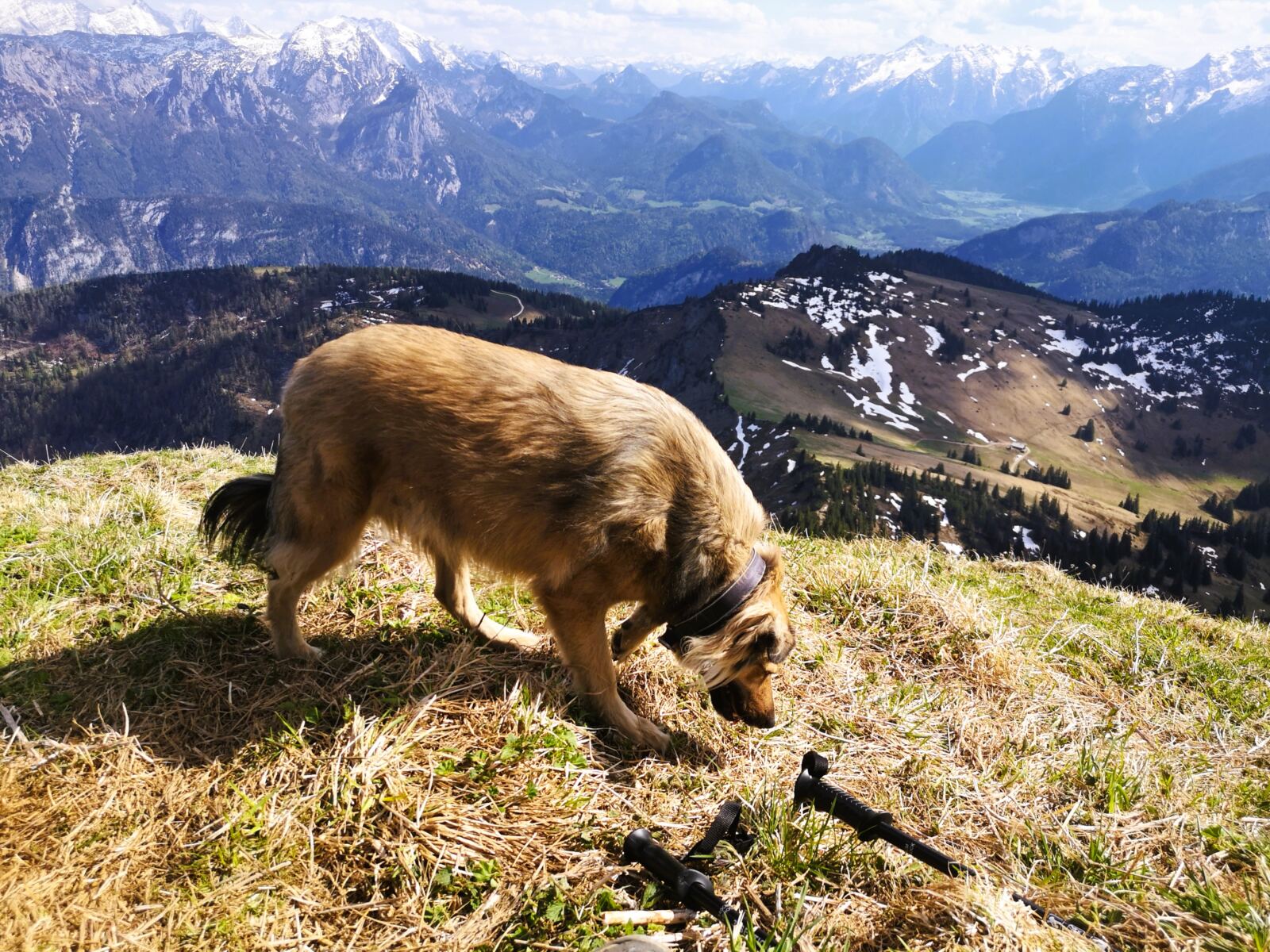 Dann, endlich, nach rund 1.400 Höhenmetern und mehr als vier Stunden Gehzeit, stehen wir am Gipfelkreuz des Sonntagshorns. 🏔️ Die Rundumsicht ist spektakulär. Wir könnten hier ewig sitzen und den Blick auf all die vielen und vielgestaltigen Berge drumherum genießen. Beim ersten Mal hier oben hat es uns wirklich umgehauen. Das vergleichsweise kleine Gipfelplateau des Sonntagshorns leert sich bald. Wir bleiben allein zurück, versunken in die Schönheit, die uns umgibt, dem Alltag enthoben und mit einem zufriedenen, bald schlafenden Hund zu unseren Füßen. Dieser Moment wird noch lange, lange nachwirken. Versprochen!