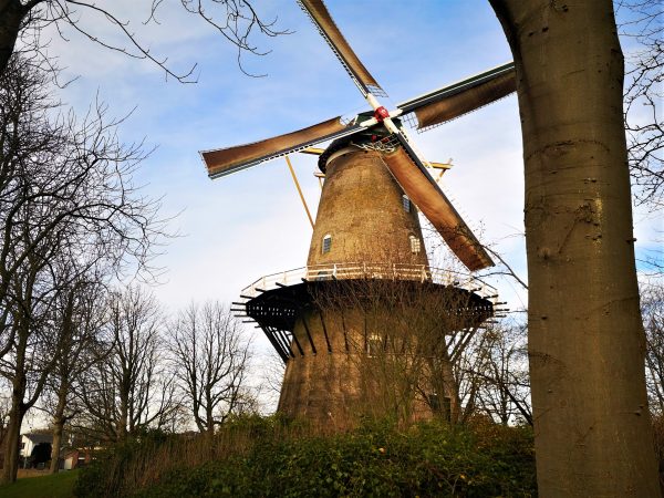 Die älteste der vier noch erhaltenen Mühlen der Stadt Middelburg: die Seismolen von 1728, gelegen direkt an unserer Gassirunde. Die Getreidemühle ist wieder mahlfähig. Wenn sie sich dreht, kann sie besichtigt werden.
