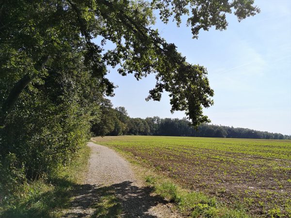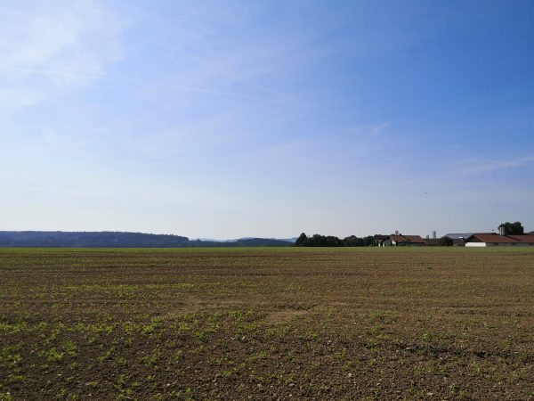 Die Wanderwege um die Mindelburg führen vorbei an Feldern ....