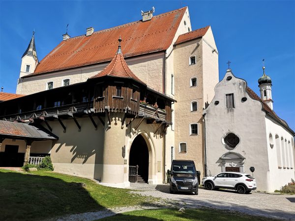 Die Hauptburg,die erst 1363 urkundlich erwähnt wird, in Teilen aber deutlich älter ist, beherbergte viele Besitzer. Seit 1949 residiert hier der Verlag Sachon. Unter diesen alten Dächern wird also tatsächlich noch gearbeitet.