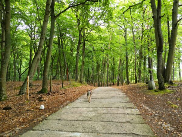 Zwischen Swinemünde und dem Seebad Misdroy erstreckt sich ein lichter Kiefern- und Eichenwald. Wie so oft an der polnischen Ostsee erzählt auch dieser Wald auf der Halbinsel Pritter Geschichte. Während beider Weltkriege errichteten die Deutschen hier viele Artilleriestützpunkte. Im Kalten Krieg baute Polen Verteidigungsanlagen zum Schutz vor der NATO. Noch bis in jüngster Vergangenheit war der Wald militärisches Sperrgebiet. Heute ziehen sich etliche Wander- und Radwege hindurch. Viel Natur und herrlich weiche Sandwege, dazwischen hier und da Ruinen und Bunkerreste, nur einen Katzensprung von der Ostsee entfernt. Unsere Wanderung mit Hund über die Halbinsel Pritter verbindet Wald und Geschichte mit einem Abstecher am herrlich breiten und feinsandigen Hundestrand von Misdroy (Strandabgänge L & M). Eine Superkombi für uns und unseren Hund.