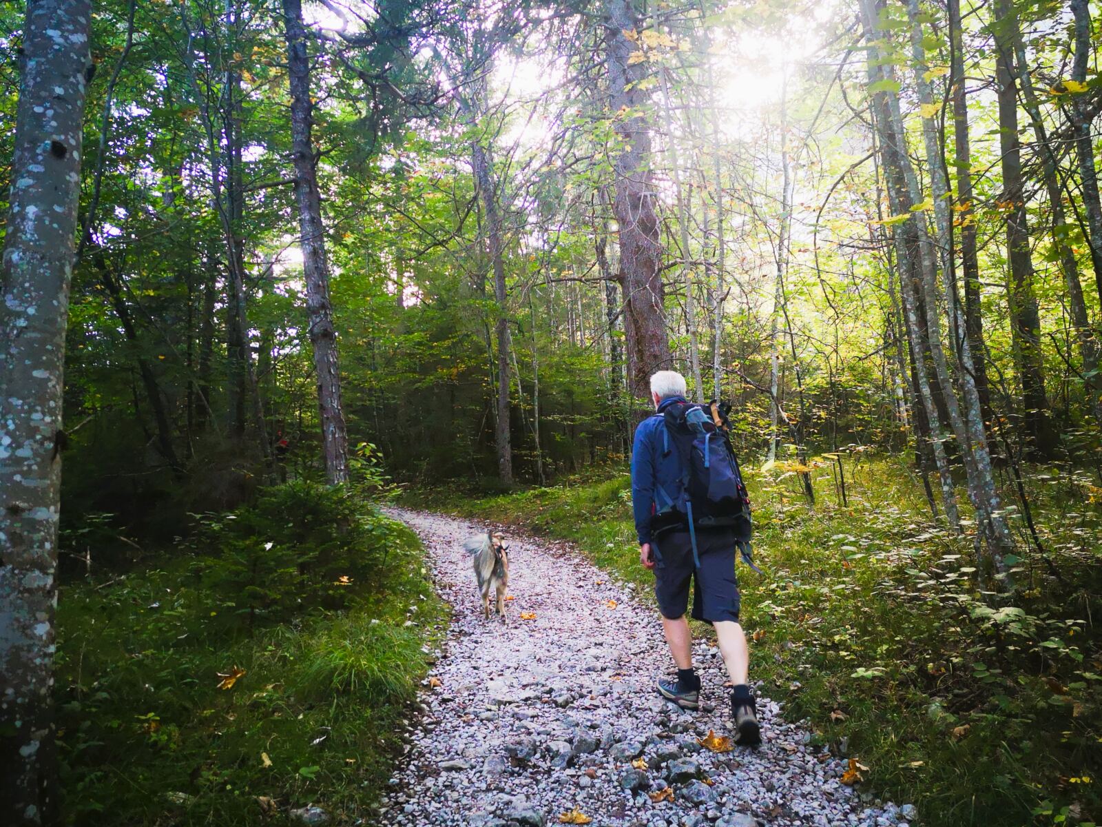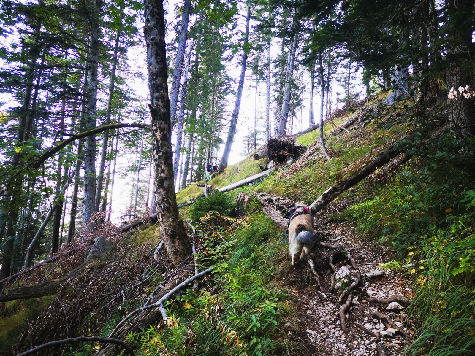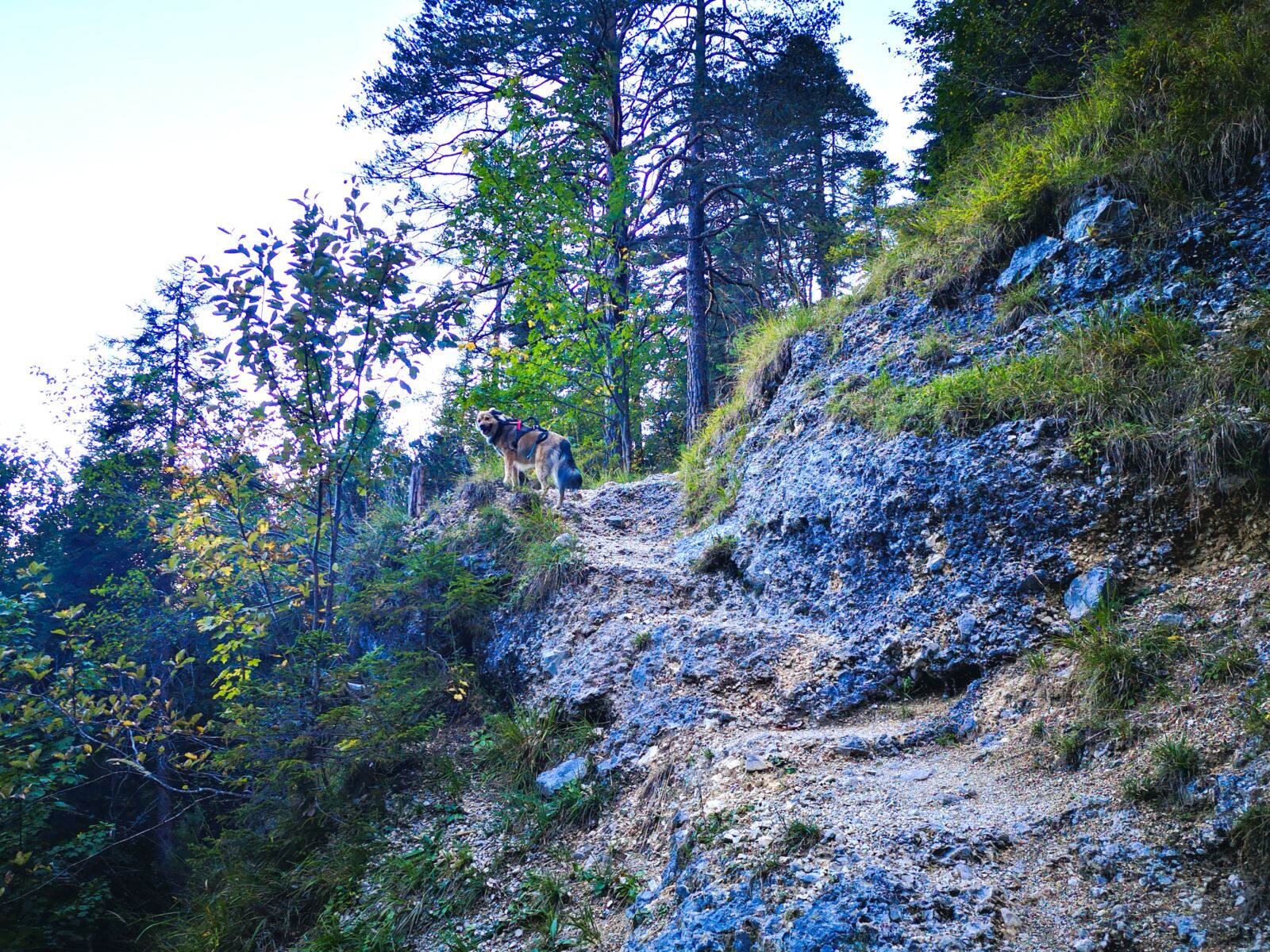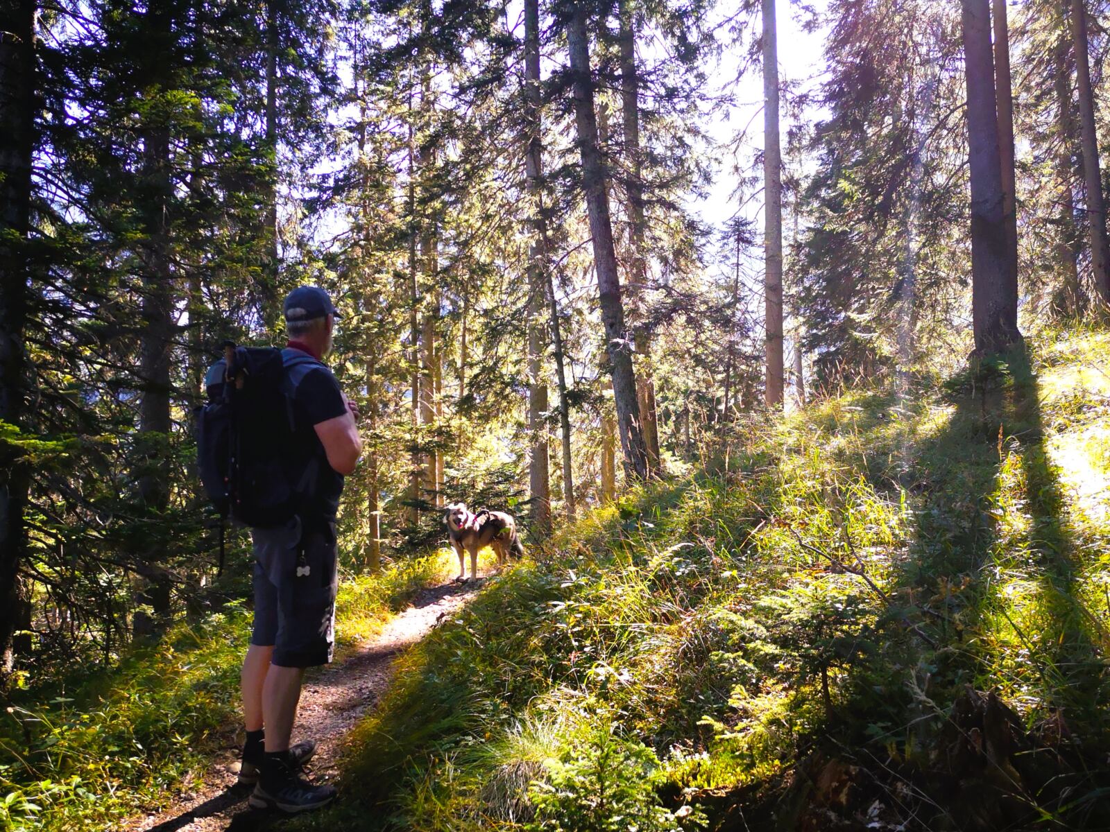 Der Wanderweg ist durchgehend gut beschildert und technisch nicht herausfordernd, weder für Zwei- noch Vierbeiner. Was es braucht: feste Schuhe und etwas Kondition für den manchmal steilen Aufstieg.