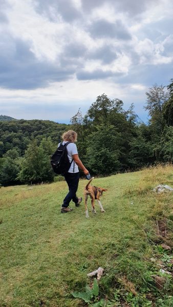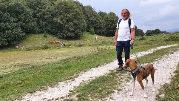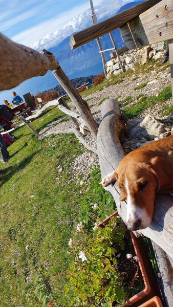 Wir folgen der Straße Richtung Prada und biegen eine kleine Straße zur Malga Pralonga ab. Diese führt in Serpentinen hoch zum kleinen Wanderparklatz Due Pozze. Hier starten wir die Tour und folgen der Straße bergauf Richtung Fiori di Baldo. An einer Schranke verlassen wir den Weg links und folgen dem Forstweg in Richtung Baito Ortigara. Durch einen schönen dichten Laubwald mit bemoosten Steinen geht es in leichter Steigung bergauf. An einer Kreuzung halten wir uns links und betreten den kleinen Trampelpfad über Wiesen und durch kleine Wäldchen (auf Steinmännchen achten!). Eine weile bergab treffen wir auf eine Schranke. Dahinter liegt eine breiter Forstweg den wir links Richtung Due Pozze / Malga Pralonga folgen. Kurz vor den Kuhweihern und unserem Parkplatz sehen wir oben die Hütte (Malga Pralonga). Hier lohnt es sich unbedingt einzukehren. Der Blick von dort über den Gardasee ist sensationell und das Essen (mit Wildkräutern vom Monte Baldo) richtig lecker. Auch die Brotzzeit (Tagliere) mit Salami, Speck und Käse aus der Region oder die selbstgemachten Kuchen sind himmlisch für eine Vesperpause. Die Hütte wurde erst kürzlich liebevoll renoviert und ein Blick nach innen lohnt sich. Hunde sind dort herzlich willkommen.