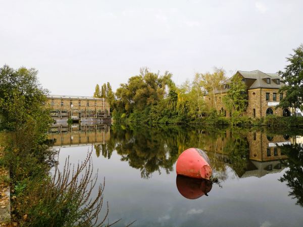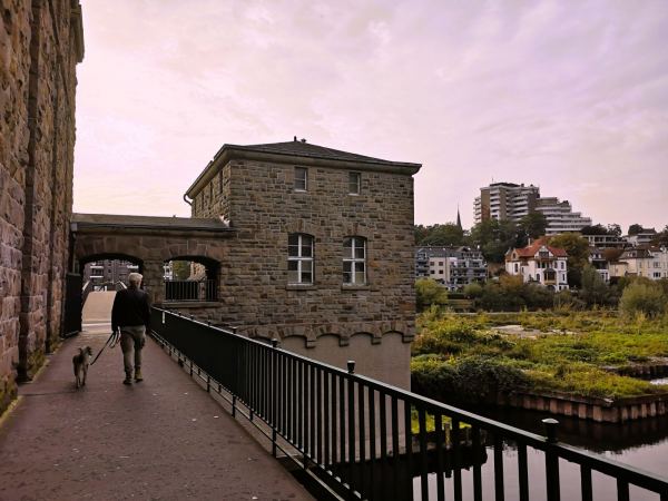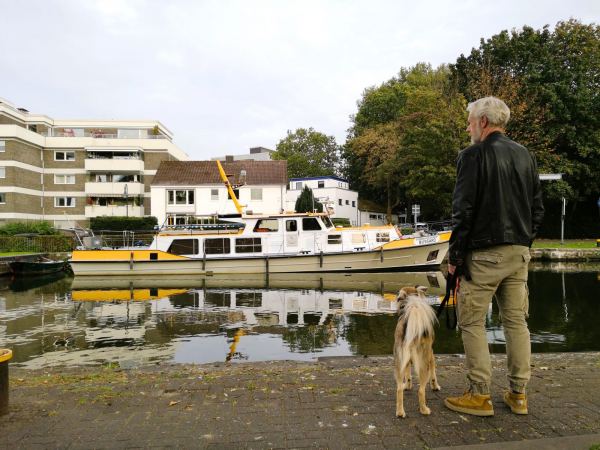 Mitten im Zentrum von Mülheim liegt die Schleuseninsel, umschlossen von der Ruhr und vom Hafenkanal. Hier gibt es immer etwas zu sehen – und für unseren Hund überraschend viel Freiraum mitten in der Stadt.