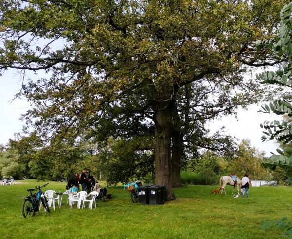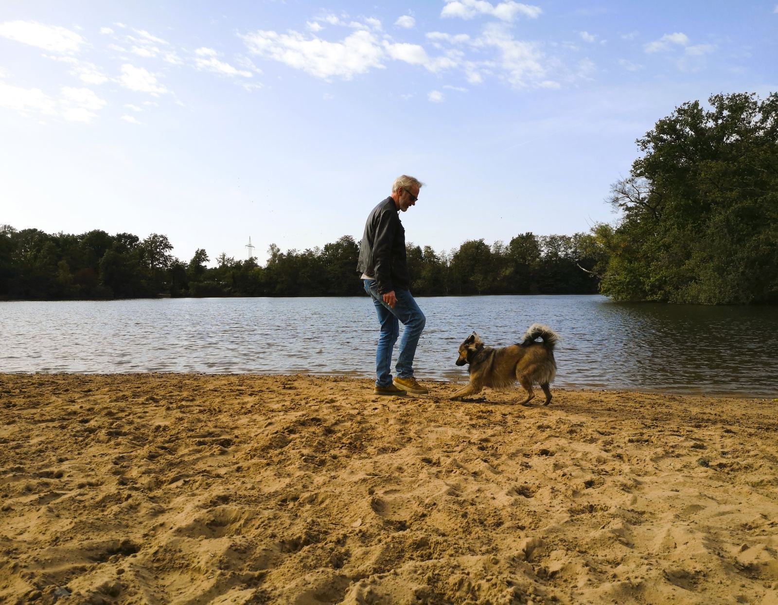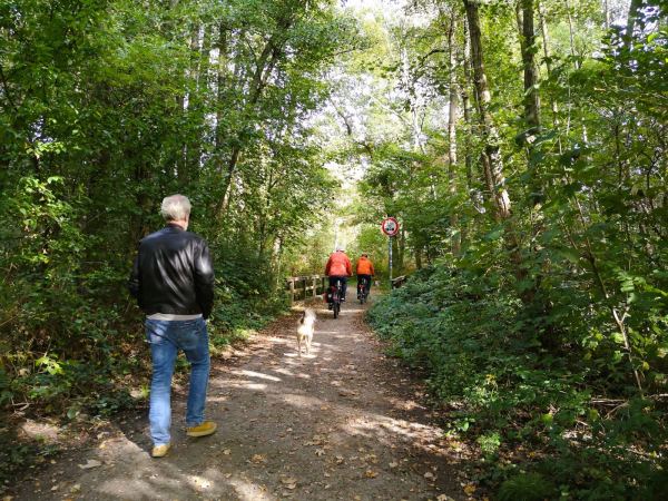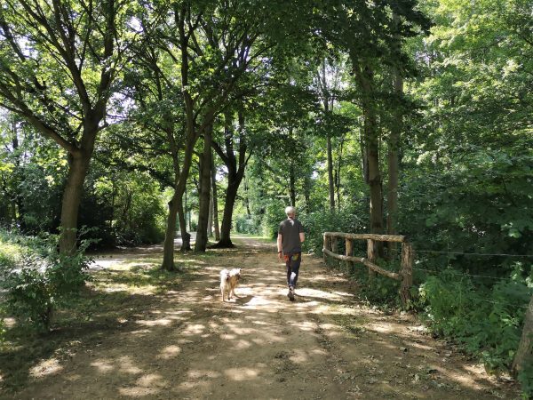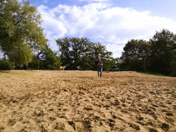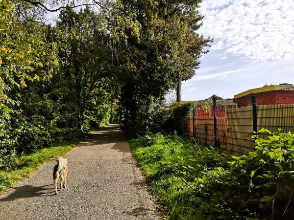 An der Grenze zu Duisburg-Wedau, durch die Bahnlinie von der Sechs-Seen-Platte getrennt, liegt der Entenfang. Am Ufer des kleinen Baggersees liegen ein Campingplatz, ein Angelverein und „Jackie`s“, ein beliebter Treffpunkt bei Radlern, Reitern und Spaziergängern, viele davon mit Hund. Bei Jackie`s gibt es Würstchen, gebratene Nudeln und mehr. Gegessen wird auf der Wiese nebenan unter ausladenden Bäumen oder, wenige Schritte weiter, am aufgeschütteten Sandstrand. Die Stühle nimmt man einfach mit oder haut sich direkt in den Sand. Herrlich entspannt hier. Um den See führt ein Rundweg. In nicht mal einer Stunde ist der Entenfang umrundet. An zwei ausgeschilderten Stellen – wo Wambach und Rottbach in den Entenfang münden – kreuzen wir ein auf wenigen Metern ein  Naturschutzgebiet und nehmen unseren Wauzi an die Leine. Den Rest der Strecke läuft er frei – wenn nicht zu viele Radler, Reiter und Spaziergänger unterwegs sind. Meist reicht der Platz aber für alle.