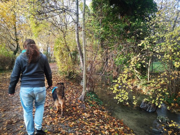 Eine kleine Gassirunde im Münchner Süden. Nur ein paar Meter vom geschäftigen Candidplatz entfernt hat man schnell das Gefühl, dass die Stadt weit weg ist. Für Hunde gibt es regelmäßig Badegelegenheiten.