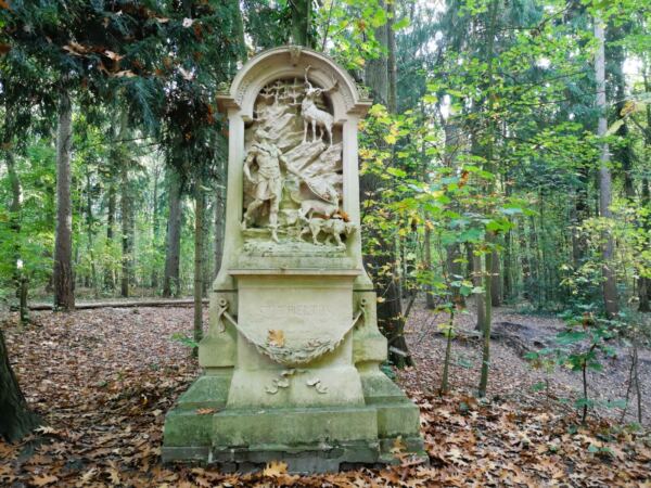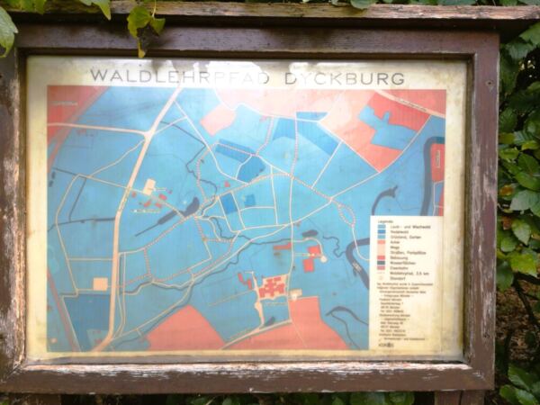 Ausgangspunkt unserer Runde ist der große Parkplatz an der Dyckburgkirche (Dyckburgstraße 228). Wer mag, kann von hier aus dem Waldlehrpfad folgen – oder einfach der Nase nach marschieren. Vorbei an der Dyckburgkirche geht es über eine Brücke in den Wald hinein. Wir halten uns links und folgen dem breiten Hauptweg, der Boniburgallee. Bald zweigt rechts am Hubertusdenkmal ein Wanderpfad in den Wald ein. Er bringt uns zum Hammerbach. Wir folgen dem Bachlauf in zahlreichen Kurven über Brücken – und schließlich über die Boniburgallee zum Standort der einstigen Boniburg an der Werse. Im weiten Bogen geht es zurück zum Ausgangspunkt